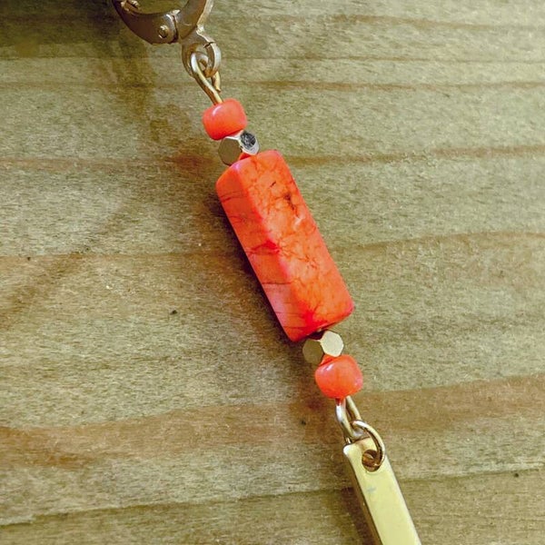 Materiaal: oorringen en staafje van RVS, parels van halfedelsteen, rocailles pareltjes