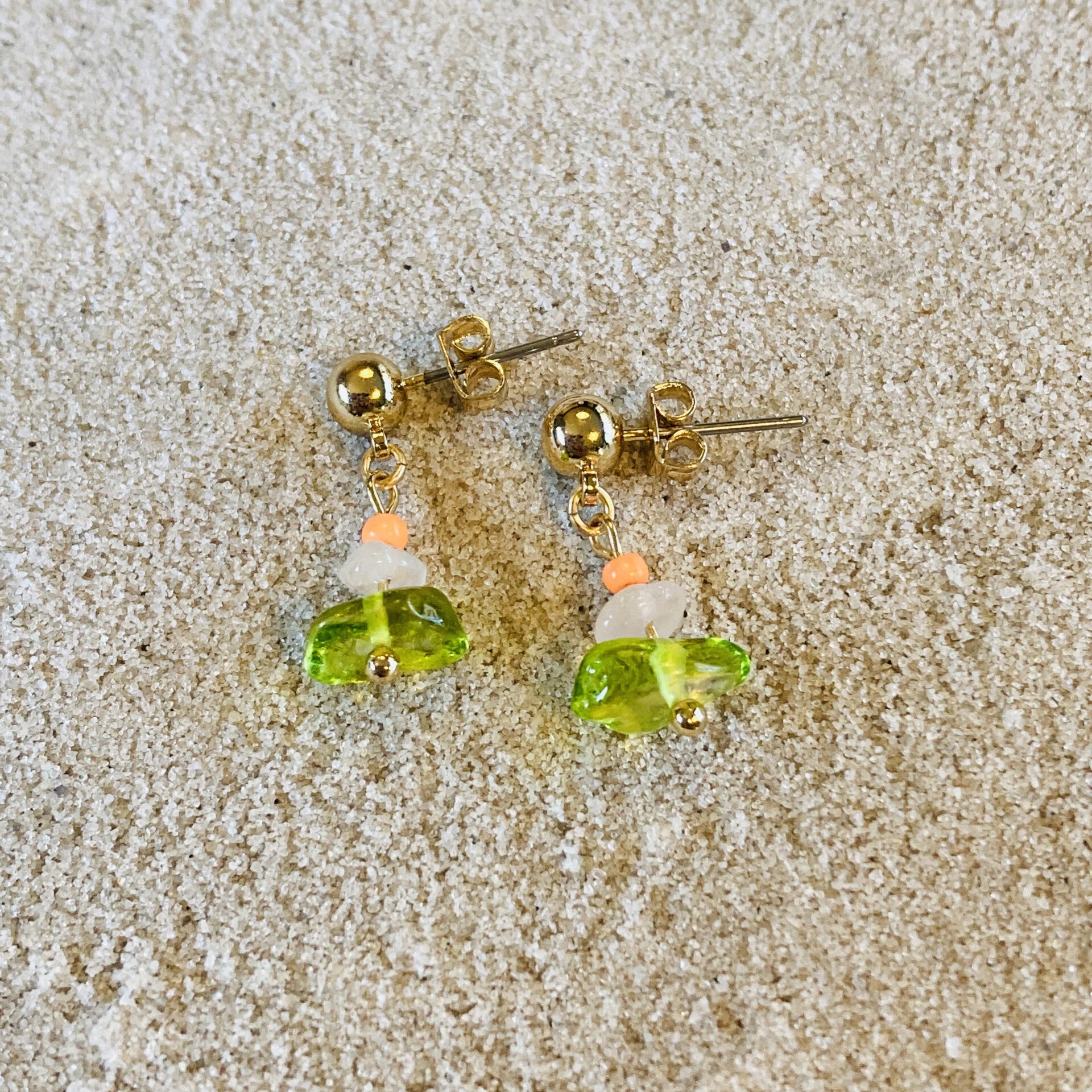 Materialen: glasparels, rocailles, RVS oorring/steker