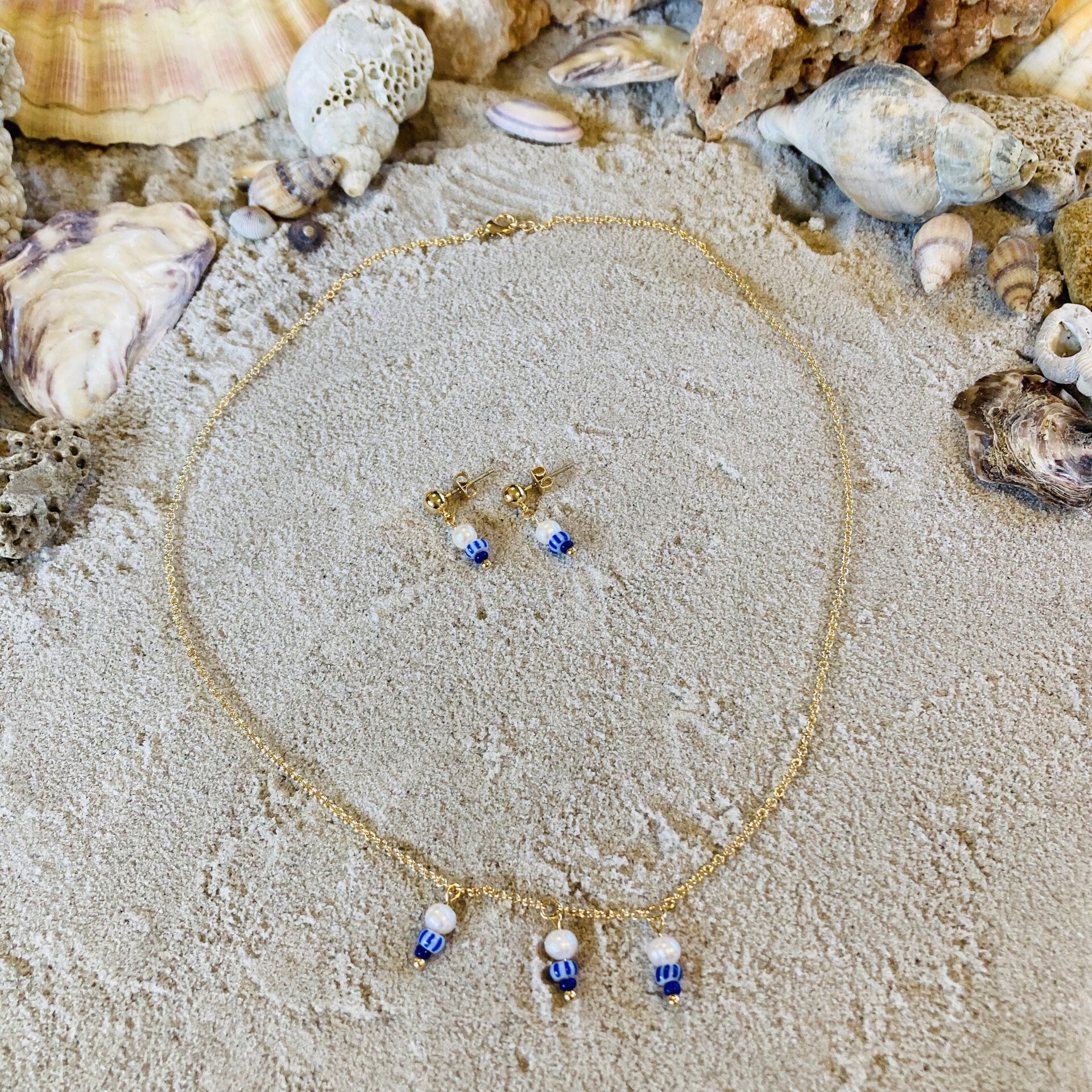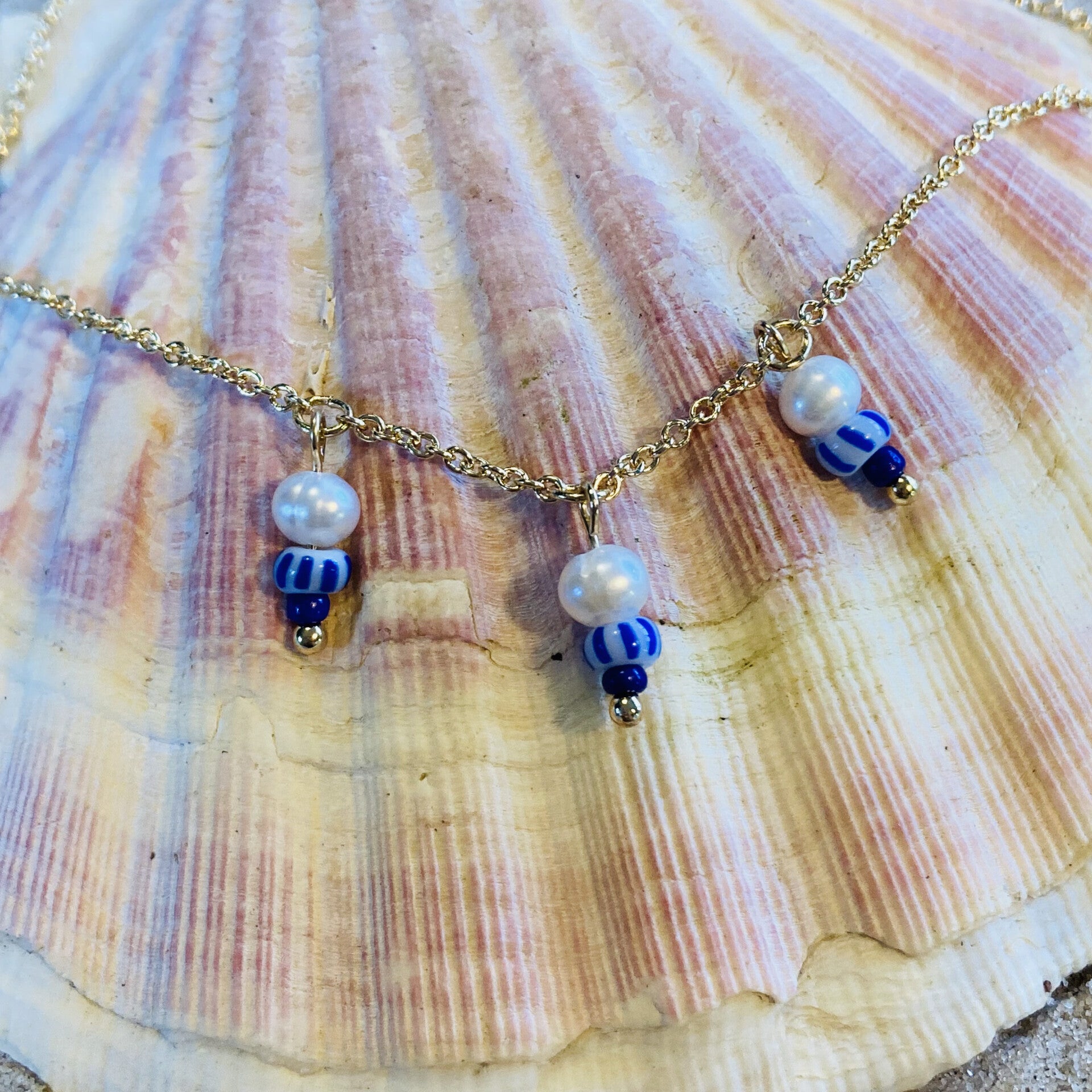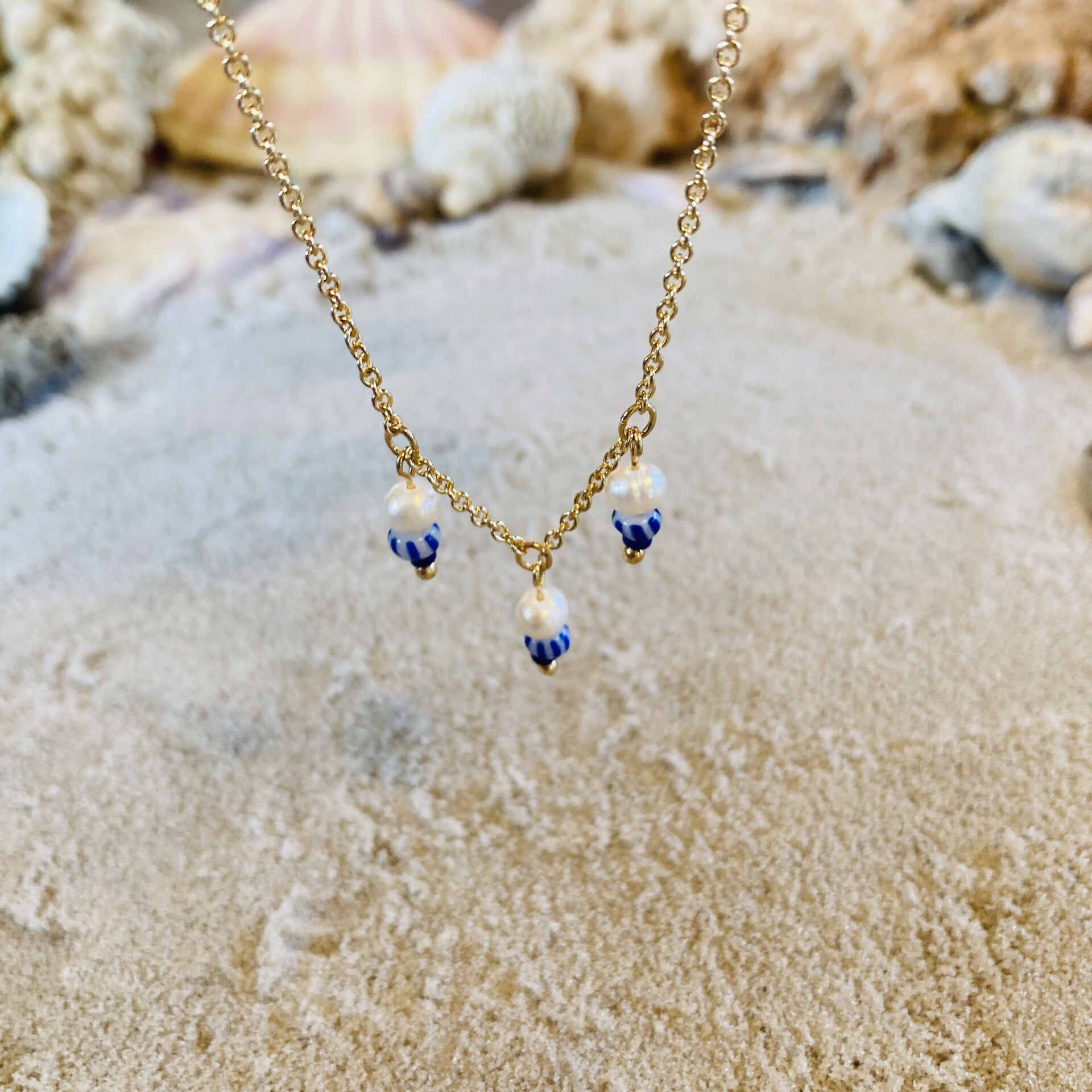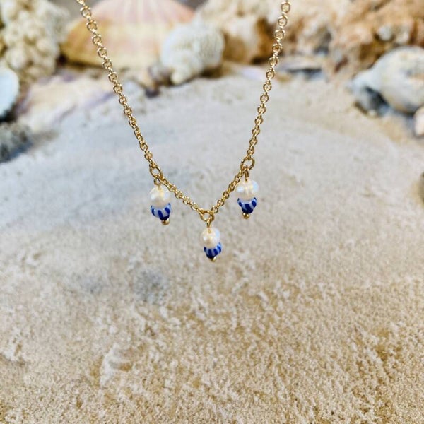 Ocean Eyes Necklace Tripple Charm Blue Striped