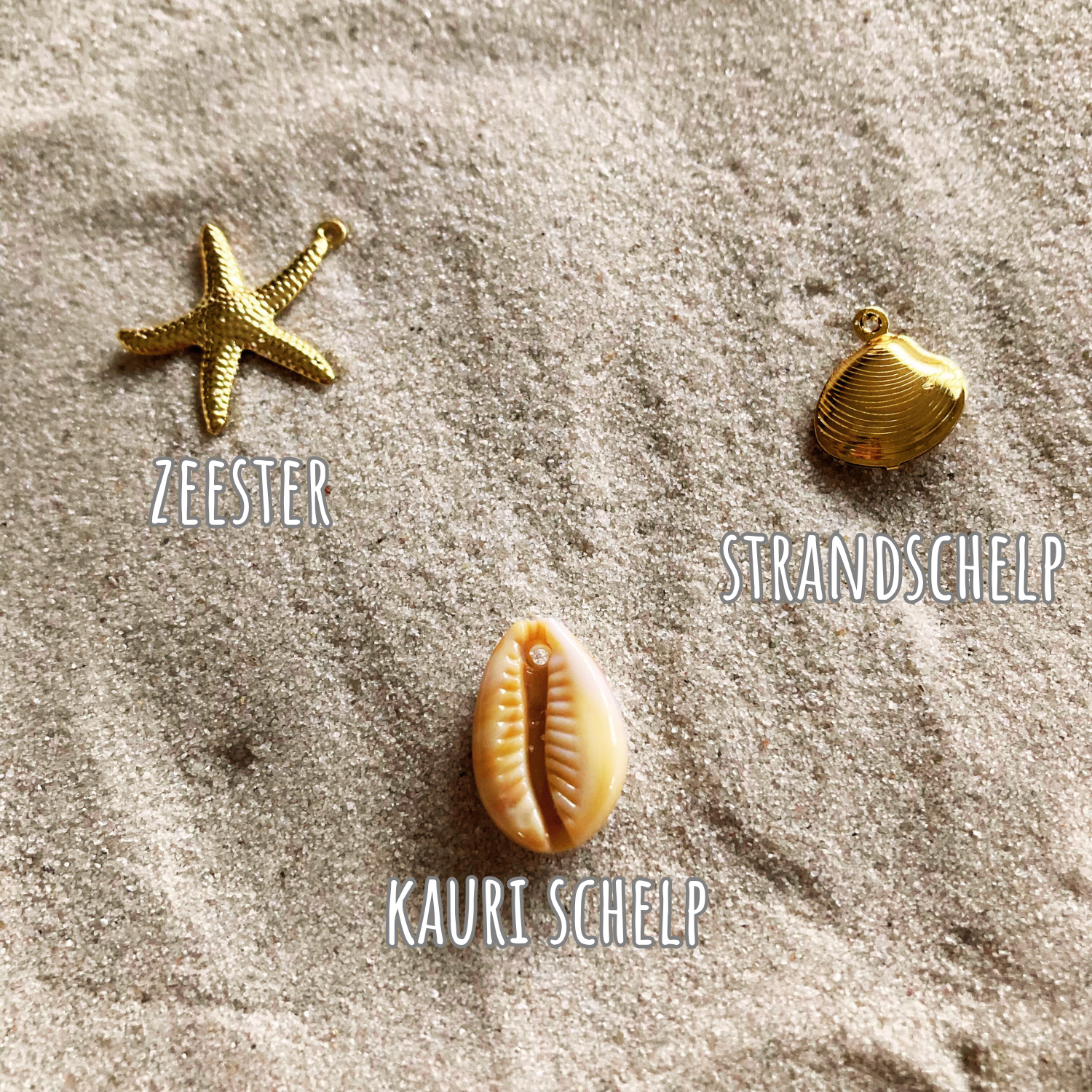 Heb je liever een andere bedel? Je kan kiezen uit een zeester, kauri schelp of strandschelp. (zie foto) Je kan dit aangeven in het veld 'Opmerkingen' bij het afrekenen.