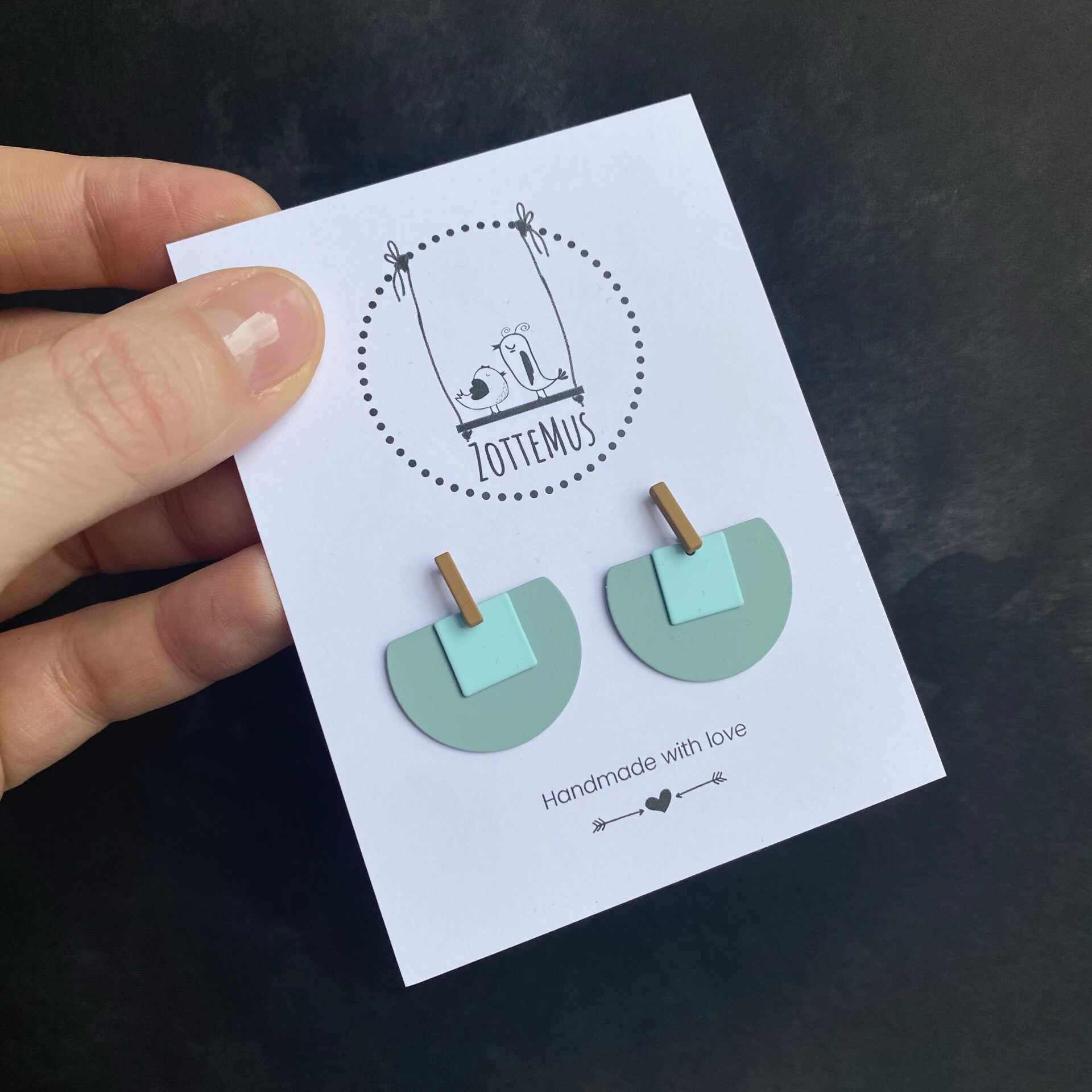 Kleuren: kakigroen, licht turkoois, zeegroen