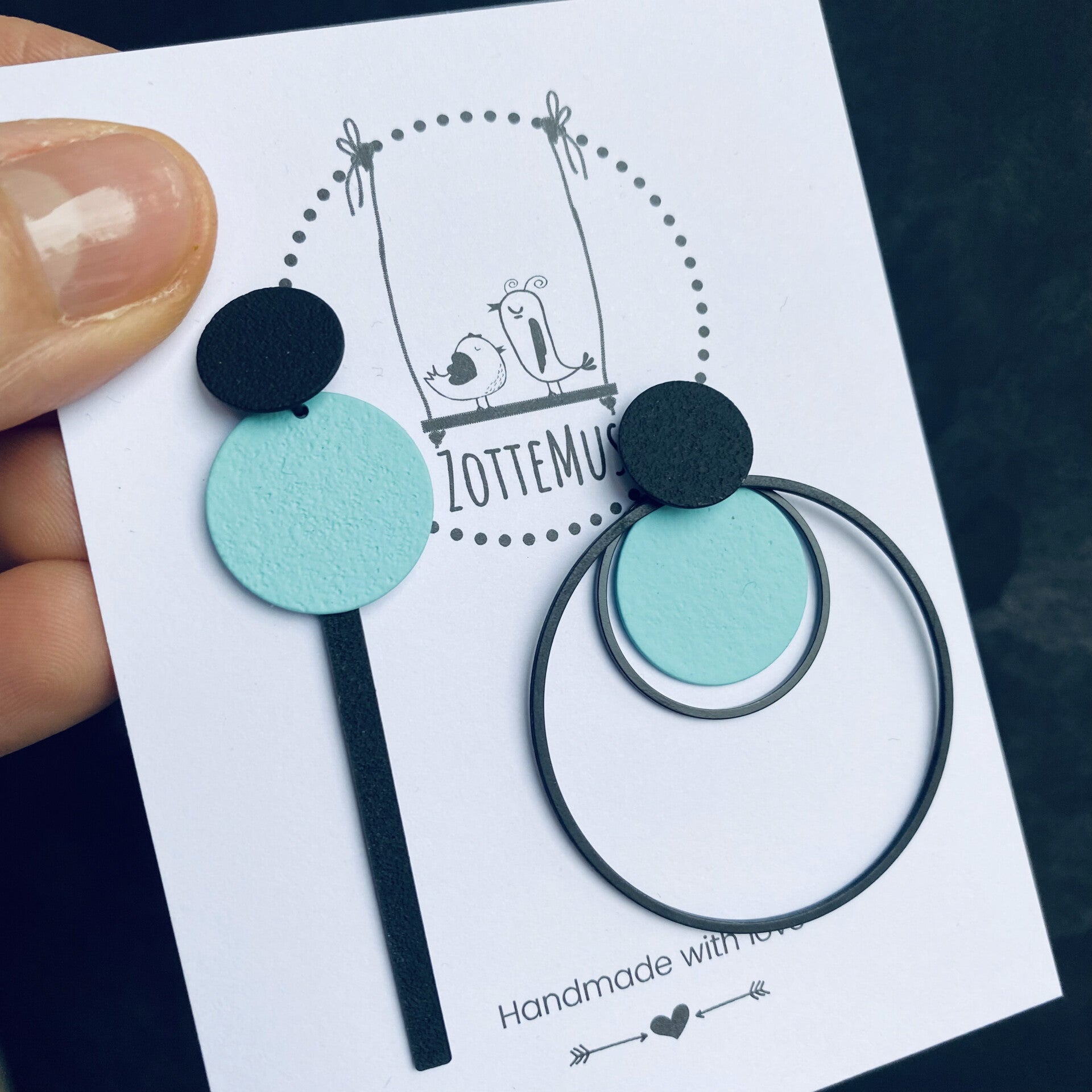 Kleuren: licht turkoois, zwart