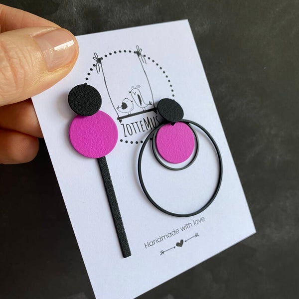 Kleuren: neon paars, zwart