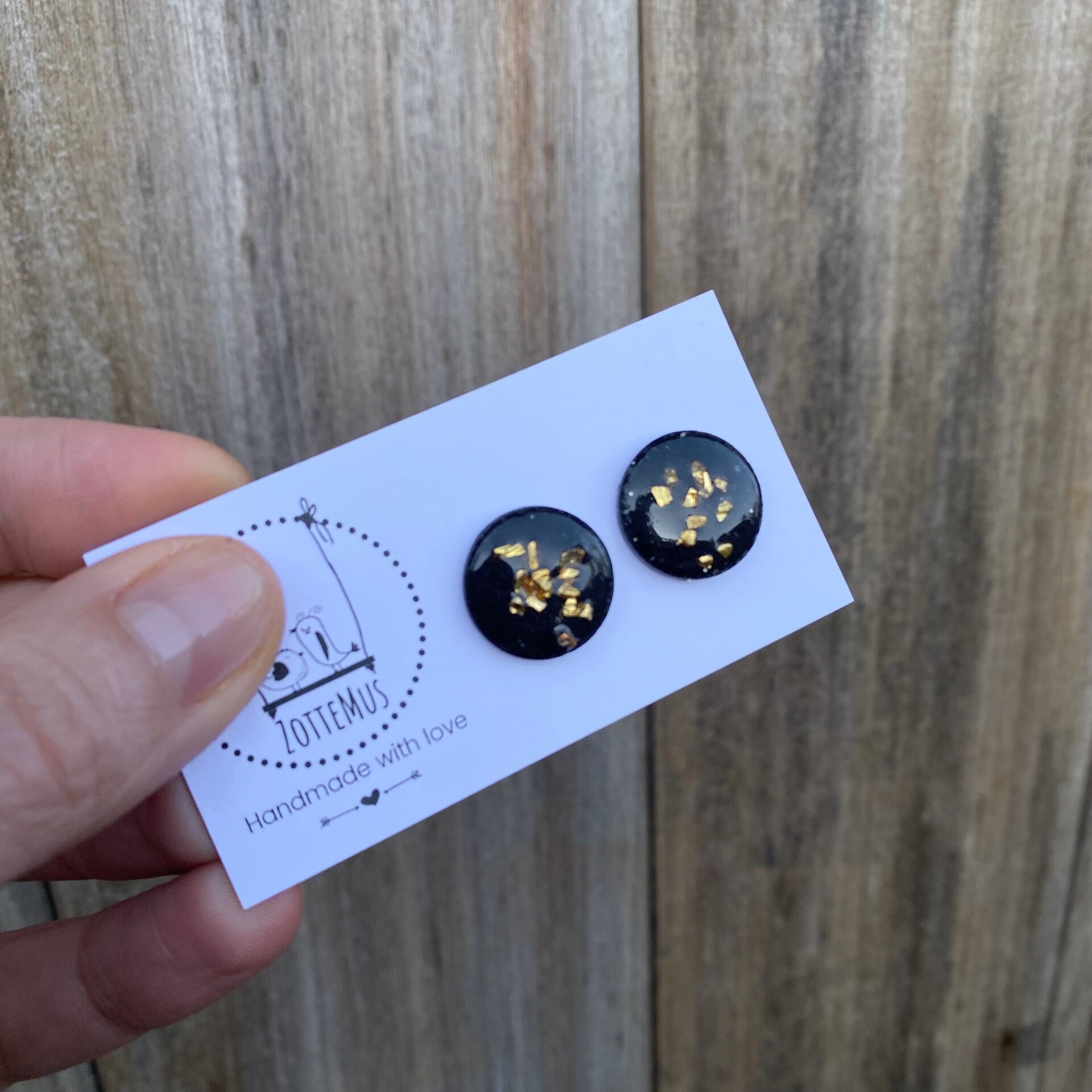 Materialen: polymeerklei, UV resin, crushed glas, RVS (= roestvrij stalen) oorstekers