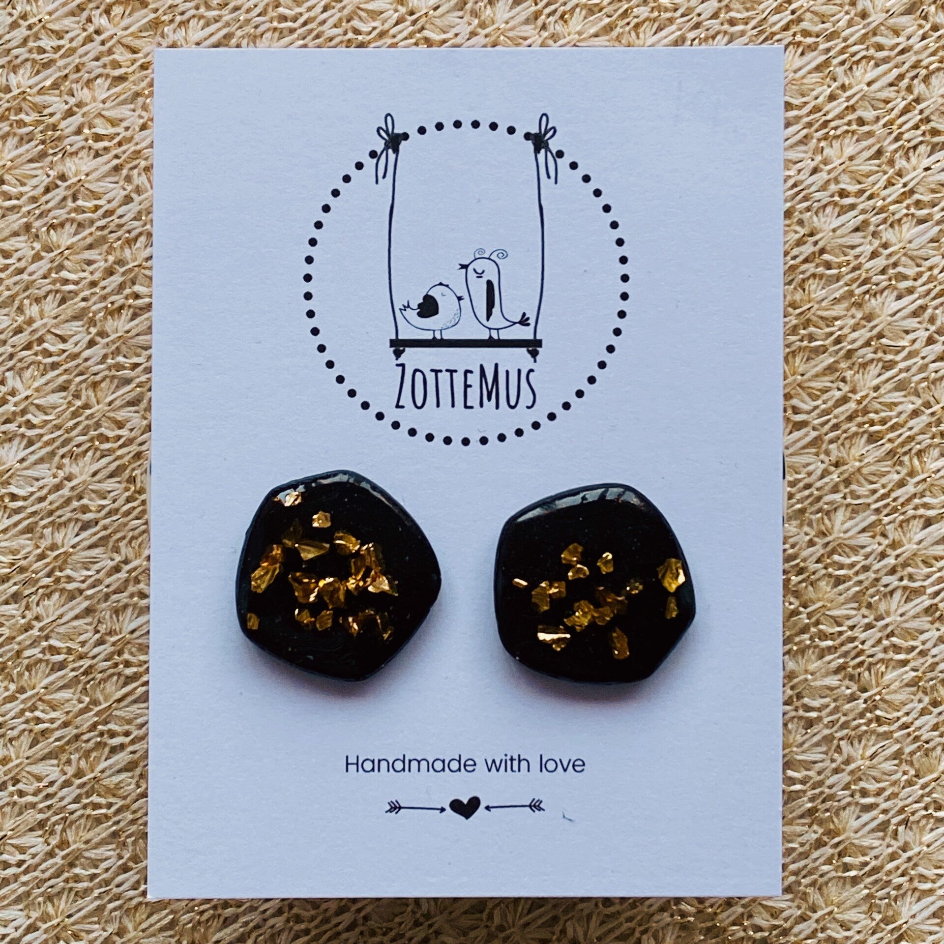 Materialen: polymeerklei, UV resin, crushed glas, RVS (= roestvrij stalen) oorstekers