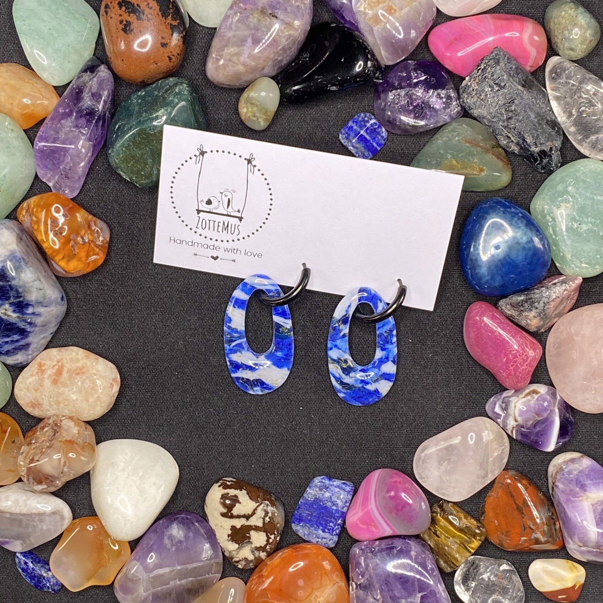 No One Knows Lapis Lazuli Oval Charm Black