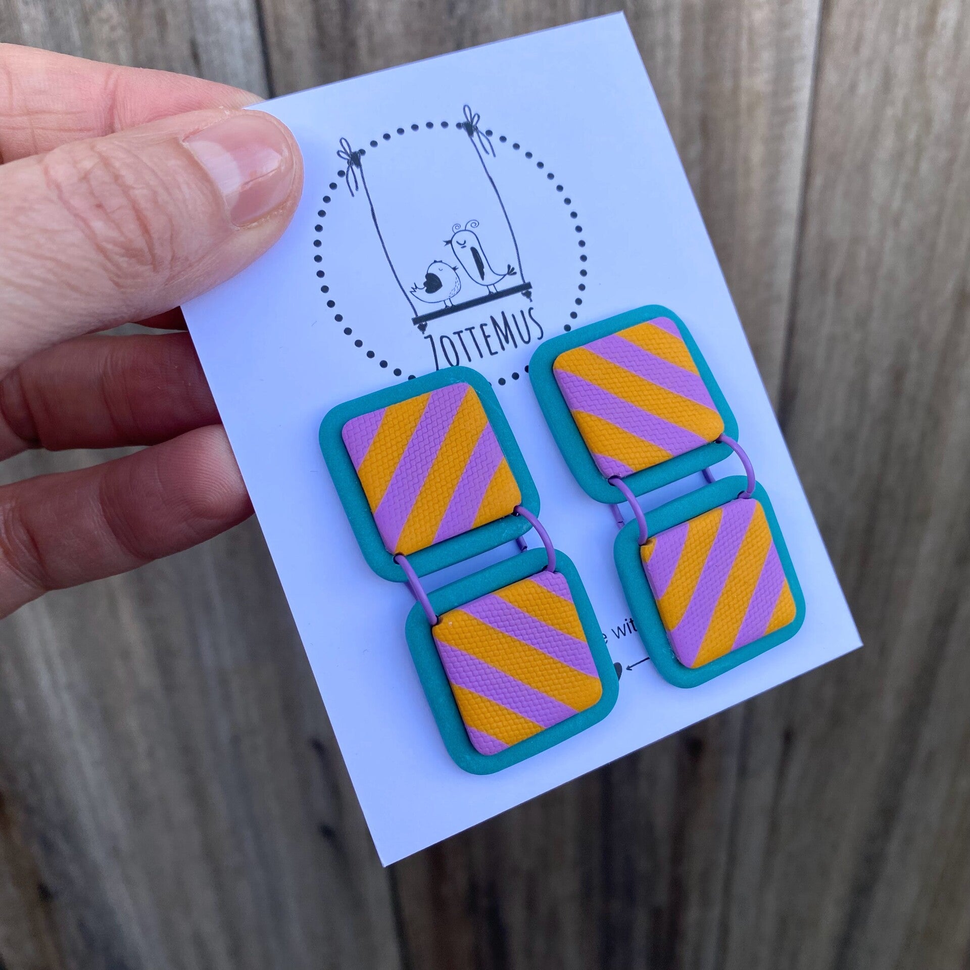 Kleuren: lila, appelblauwzeegroen, oranje